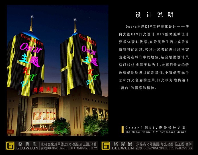 亮化效果图设计 夜景工程设计 照明效果图设计 亮化设计 —Oscar主题KTV夜景设计方案...[详细]