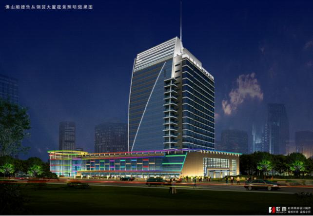 主要包括立面照明及裙楼商业照明,主要使用灯具:15WLED洗墙灯,RGB变色,12WLED数码管,蓝、白两色交替变色、流水等效果,12W单色LED轮廓灯,该项目于2011年10月6日开工,目前除首层埋地灯未安装,已经基本完工亮灯。