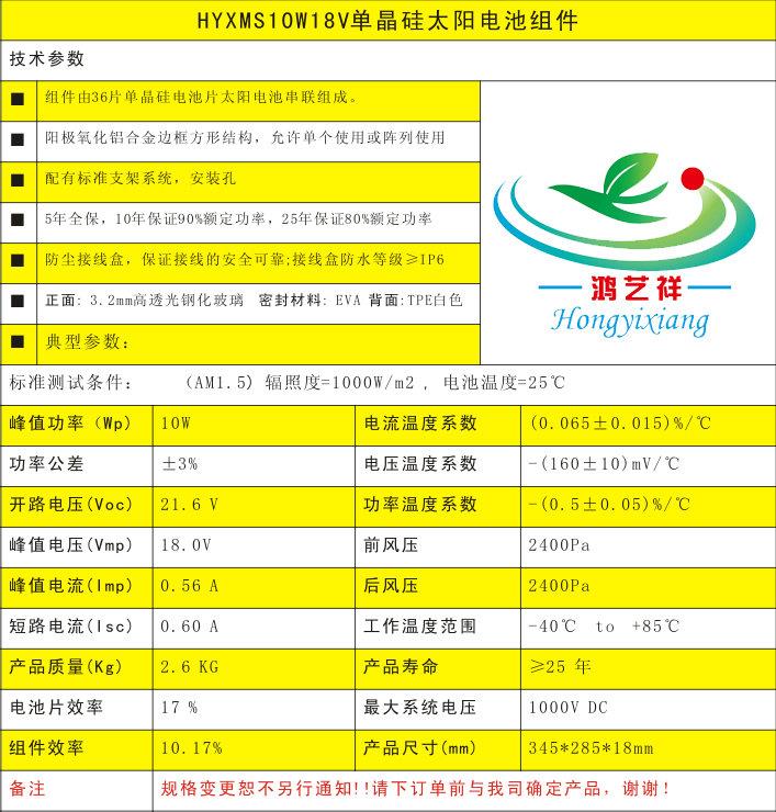 新疆乌鲁木齐10W单晶硅太阳能电池板组件厂家