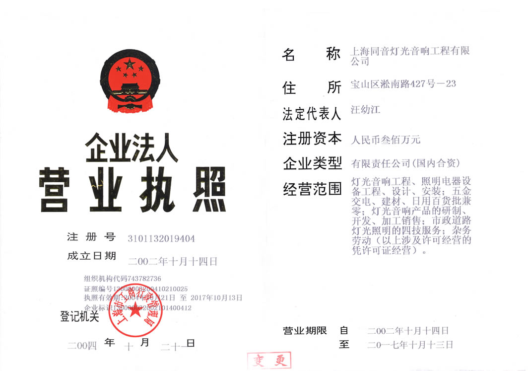 经营范围:夜景照明的学术研究、规划设计、工程施工