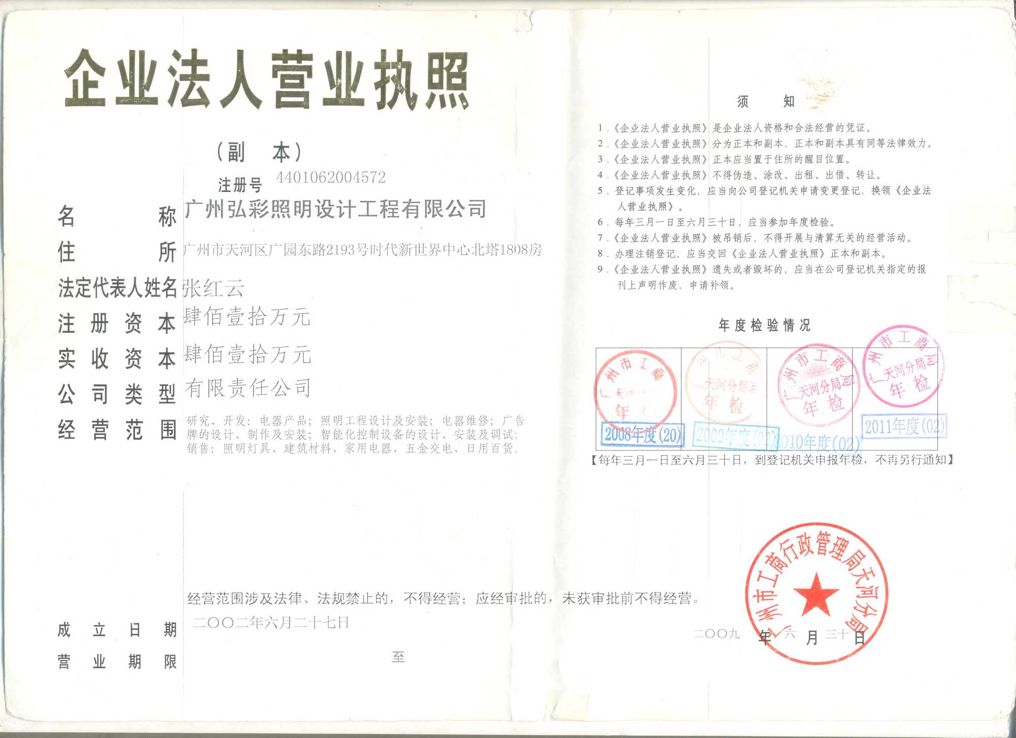 - 经营范围:照明工程的设计及施工,智能灯光控制系统设计及施工,照明灯具销售