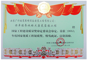 2006年12月5日,北京广灯迪赛公司董事长酆庆先生应邀出席中国人民大会堂举办的2006年度国家优质工程质量颁奖会议上领取2006年度国家优质工程奖银质奖奖章以及奖状。